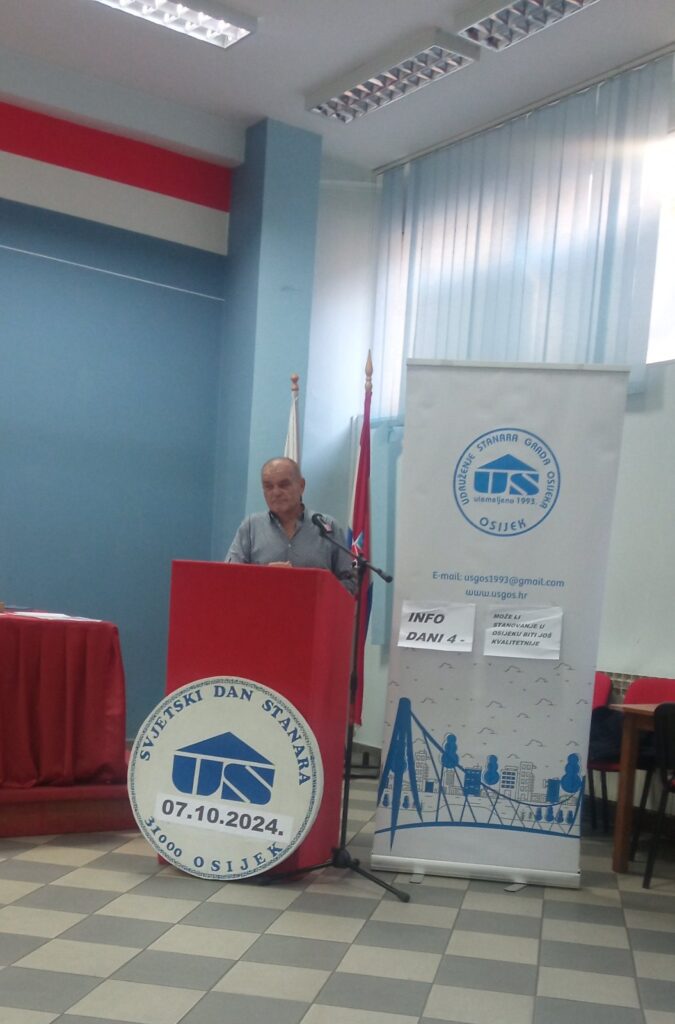 Udruženje stanara grada Osijeka svake godine obilježavanja Svjetski dan stanovanja prvog ponedjeljka u mjesecu listopadu. Ove godine taj dan bio je 7. listopada, a bilo je radno i svečano. Tim povodom predsjednika gosp. Milana Kamenka i člana Izvršnog odbora USGOS-a gđu. Suzanu Kranjčec na radni sastanak u Gradskoj upravi primili su gosp. Danijel Slobođanac pročelnik Upravnog odjela za komunalno gospodarstvo, promet i mjesnu samoupravu, gđa Sanja Scitovski, zamjenica pročelnika te Krešimir Novoselić, direktor Zavoda za stanovanje.Bila je to prilika prisjetiti se na rad Udruženja u protekloj godini i iznijeti planove za dalje te ponovo istaknuti osnovni cilj djelovanja USGOS-a – zalagati se za kvalitetu i kulturu stanovanja te podizanje svijesti za što bolji suživot.